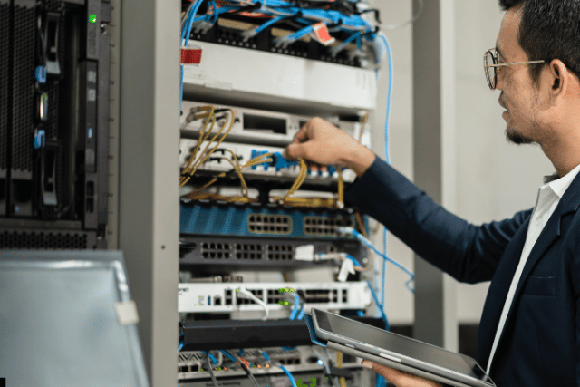 Kami menawarkan layanan instalasi pusat data dengan fokus pada profesionalisme dan kerapihan. Tim teknisi berpengalaman kami akan memastikan setiap komponen terpasang dengan benar dan aman, menggunakan metode terkini dan peralatan berkualitas tinggi. Layanan kami menjamin pusat data Anda beroperasi efisien dan tanpa gangguan.